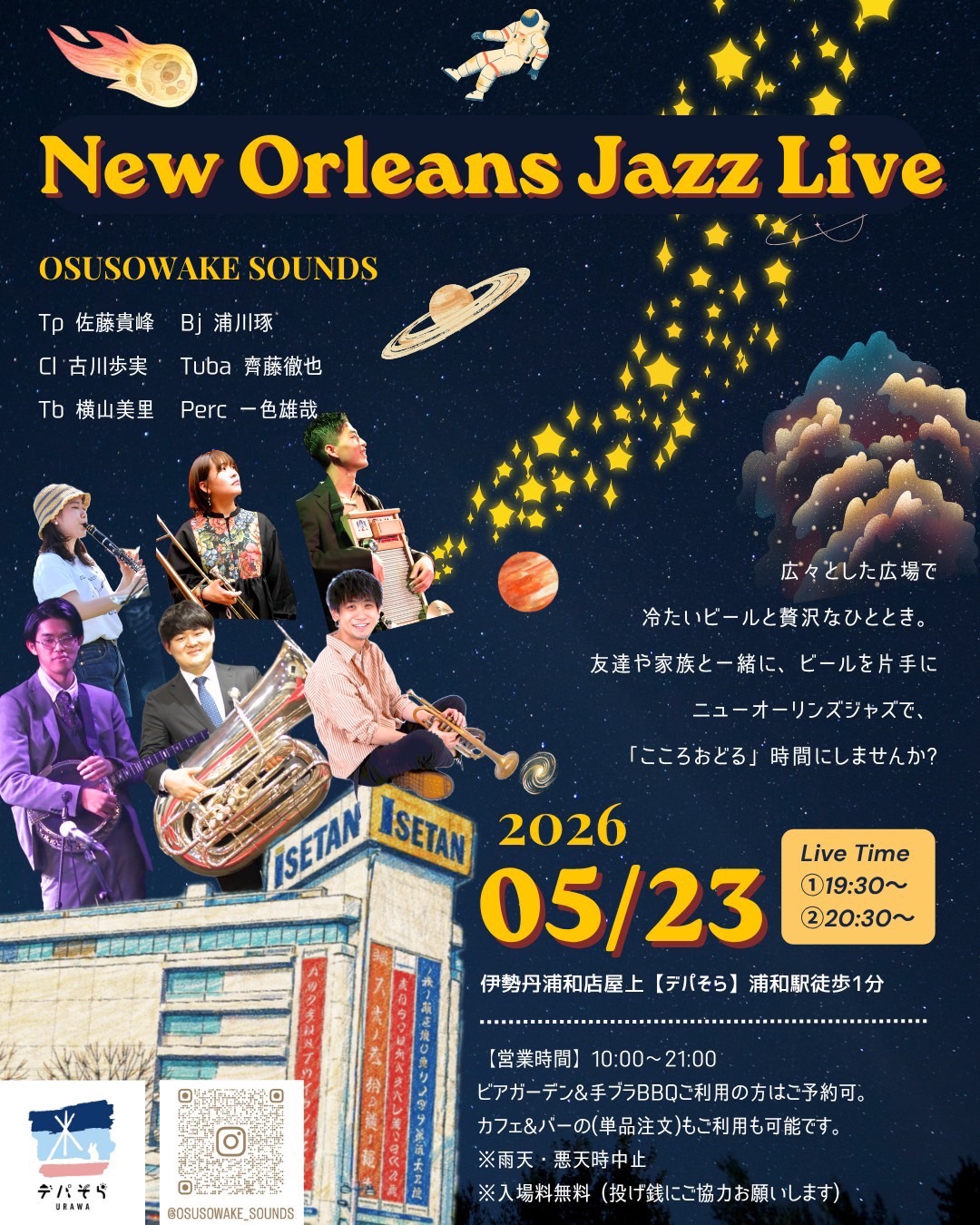 陽気なニューオーリンズジャズをお届けする「おすそわけサウンズ」が、音楽の楽しさをおすそわけします!デパそらは3度目の出演🎵